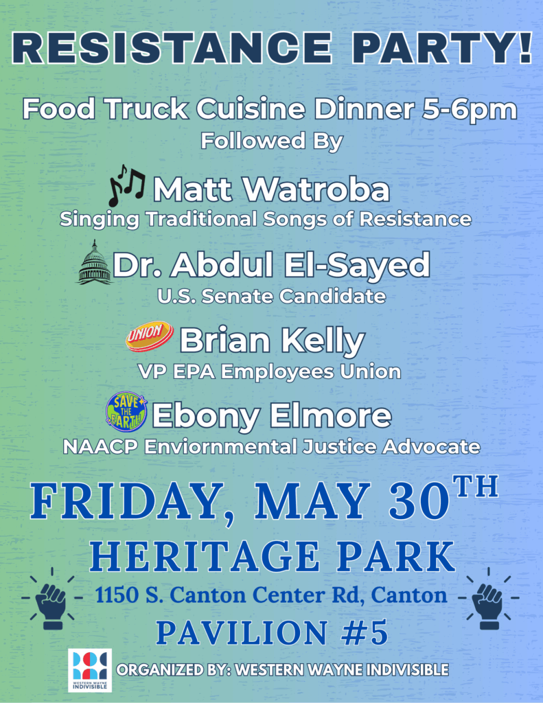 Dinner starts at 5pm on Friday, May 30 at Heritage Park in Canton – let’s share a meal together! Songs and speakers to energize us for the days to come.